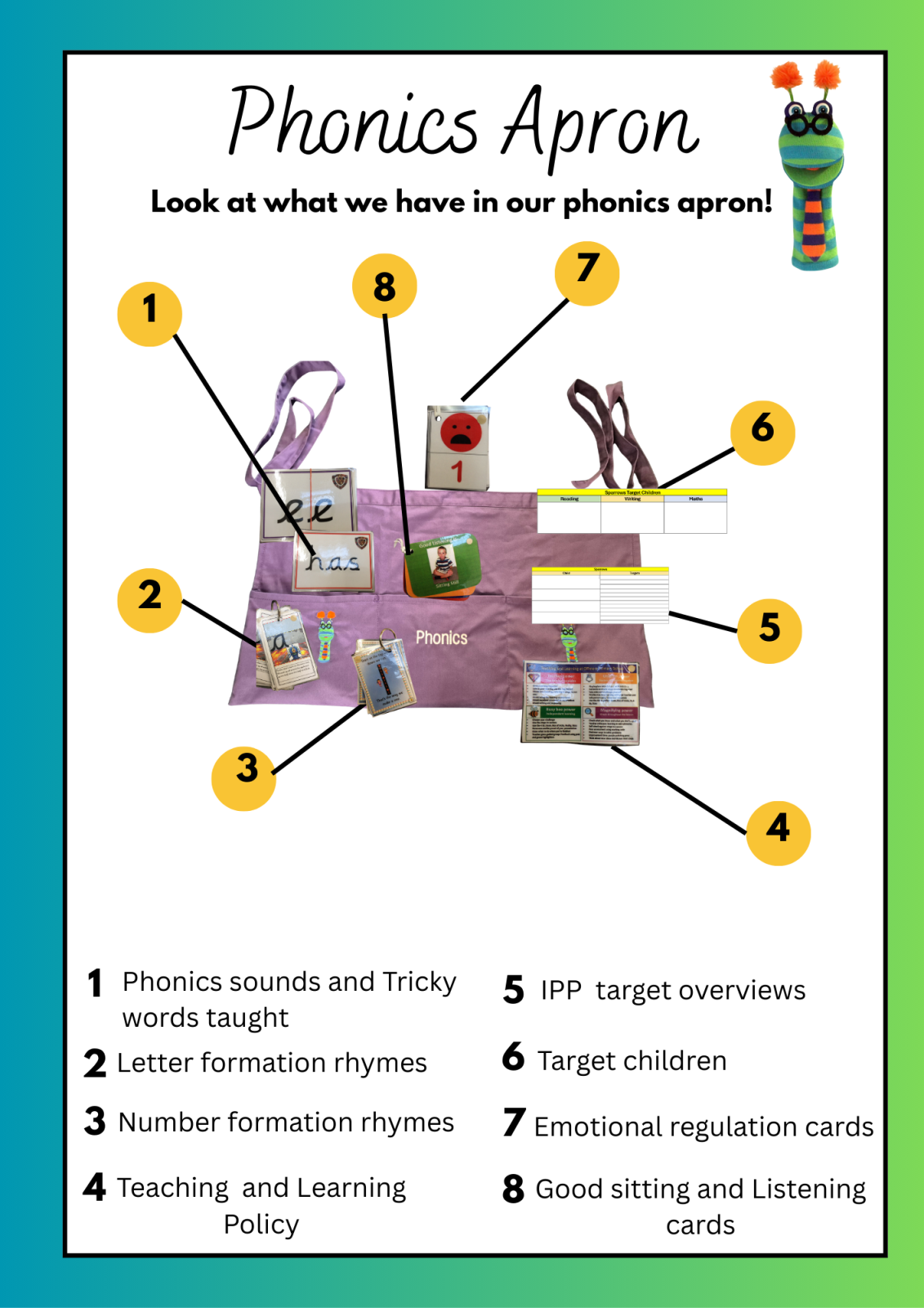 Look what the Reception staff have inside their phonics apron!