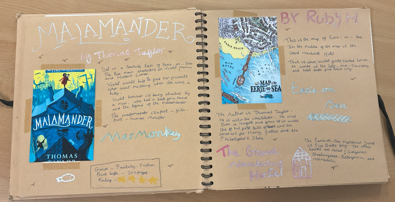 In Key Stage 2, reading leaders promote our stunning Reading for Pleasure Journal , a creative scrapbook that travels home each week.