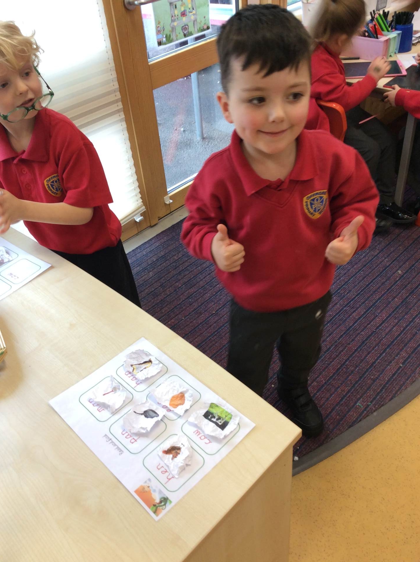 In Reception we have daily Phonics sessions. We love it when Flump joins us and challenges us, such as segmenting and blending words or reading tricky words on sight. We always have our good sitting, good listening and good looking when learning with Flump. Our activities are based on Phase 2, 3 and 4 phonics.